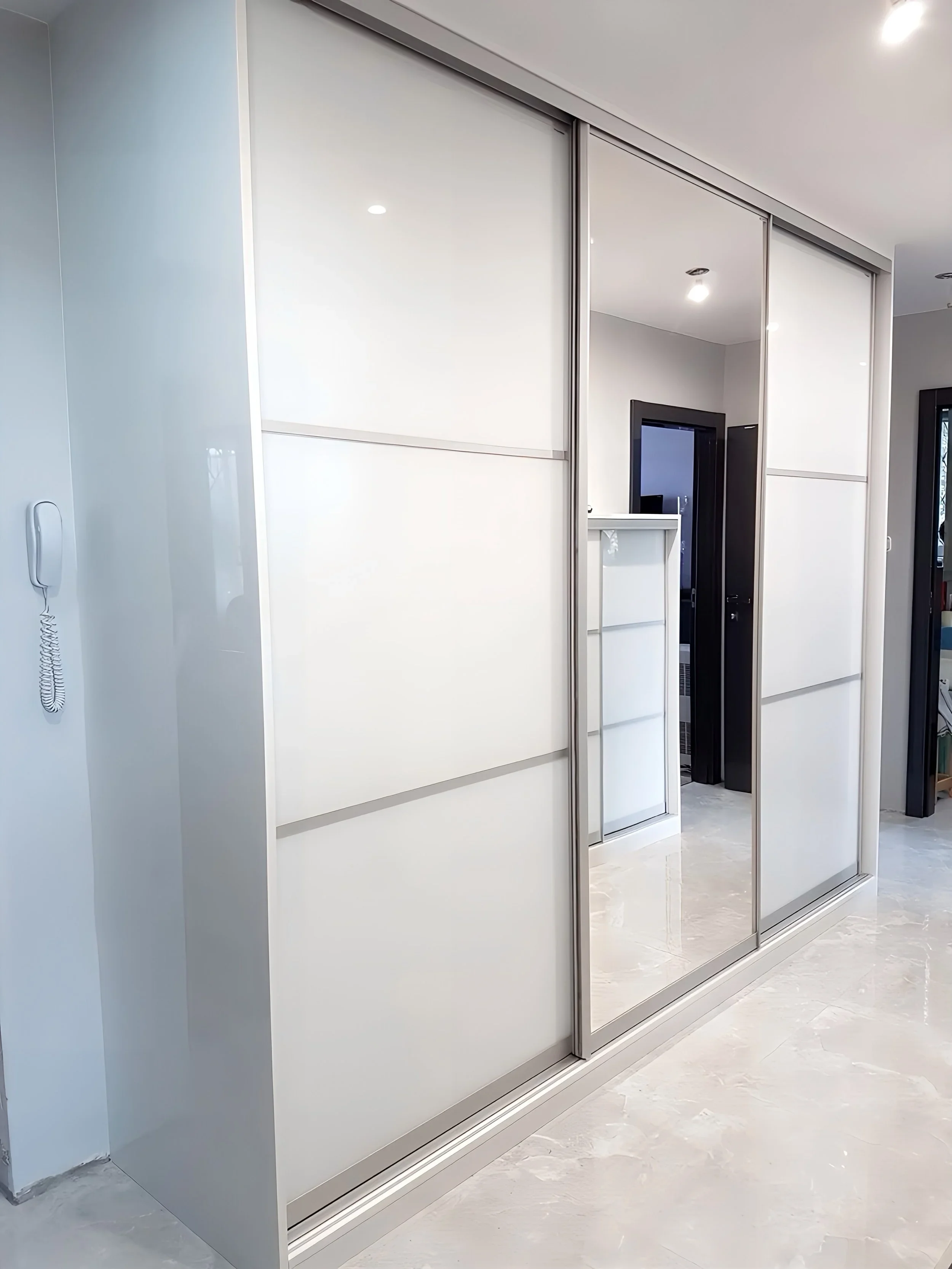 Frosted glass sliding wardrobes deliver a soft, designer finish with privacy. Go classic white frost, grey/tinted frost, or opt for super-white glass for a crisp architectural look.